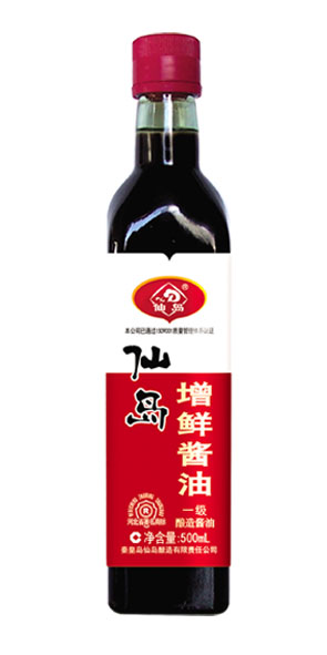 2、仙島生抽:以非轉(zhuǎn)基因大豆、面粉為主要原料,人工接入食用曲種經(jīng)天然露曬發(fā)酵而成。其色澤紅潤,滋味鮮美,豉味濃郁,風(fēng)味獨特,適用于炒菜和涼拌菜。