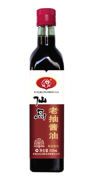 3、仙島老抽:在原味醬油的基礎(chǔ)上,添加白糖,谷氨酸鈉,經(jīng)沉淀、過濾而得,成品色澤較深,濃稠,有光澤,適合于紅燒、上色菜品的烹調(diào)。